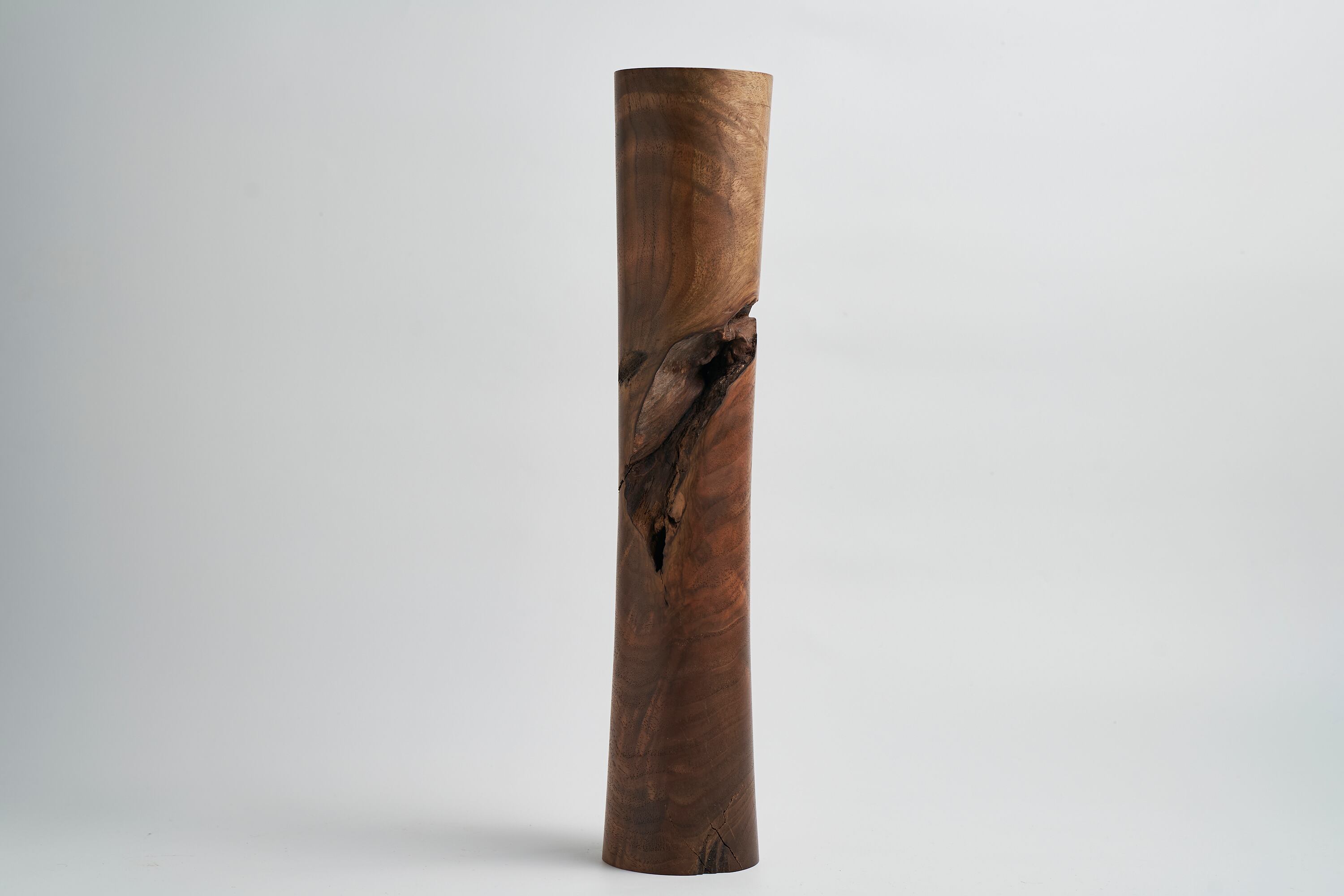 美しい木目に加え、中央には横に走る抉れが見られ、二つとない形をしています。